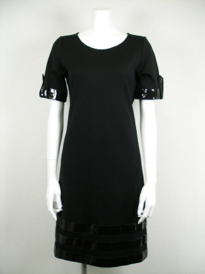 着やすいジャージワンピも、スパンコール使いでよそゆき顔に。膝丈が上品です!エレガンス度90%、スタイリッシュ度10%。