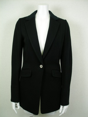 長めのジャケットをタイトなパンツとニーハイブーツでカッコよく。シフォン使いのインナーで女らしさもキープ!エレガンス度60%、スタイリッシュ度40%。