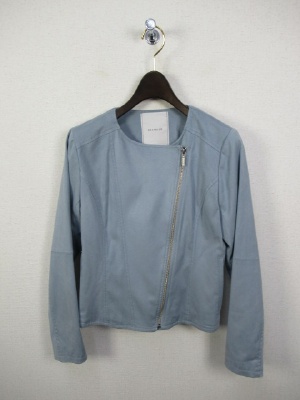 サスペンダー付きスカートですが今回は無しでコーデしてみました。フェイススエードのライダースジャケットでスタイリッシュな装いに。袖を通さず羽織るだけでオシャレなシルエットが生まれます!スタイリッシュ度90%、エレガンス度10%。
