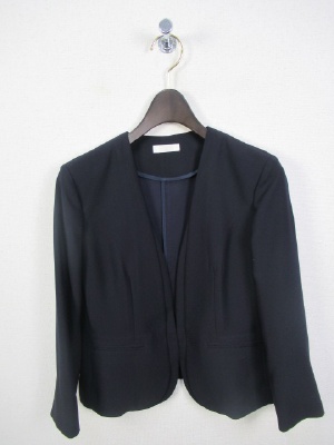 3月、4月は入卒の季節。紺と黄色のエレガントなワンピースに無地の紺ジャケットを合わせて清楚なハレの日の装い!エレガンス度80%、フェミニン度20%