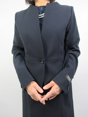 この時期は卒業入学シーンが多い。スカート派の方にノーカラーのJKとスカートの組み合わせをご紹介。インナーのブラウスは同色のオシャレなブラウスをプラスしました。エレガンス度100%。