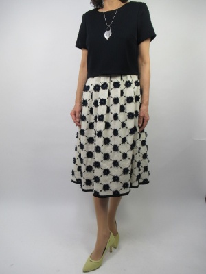 (レース+リボンで大人のモノトーンコーデ)繊細なレース袖が印象的な白ブラウスに立体感のあるブラックスカートを合わせた上品なコーディネート。甘さのあるディティールもモノトーン配色で大人っぽくまとまります。スカートは程よいフレア感とリボンのモチーフで動くたびに表情の出る1枚。きちんと感がありちょっとしたお出かけやセレモニーにも活躍します。 | |