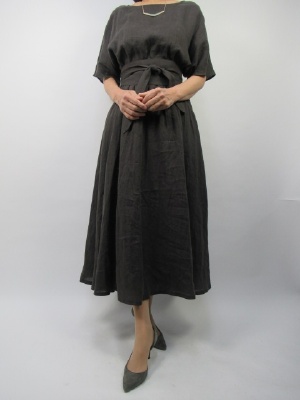 ウエストのサッシュベルトでスカートの部分の広がりを強調したお出かけワンピース。素材は洗える麻100%。ソフトな素材は肌のなじみも良く一枚で完成するスタイリングがワンピースの良いところ!エレガンス度80%、フェミニン度20%。