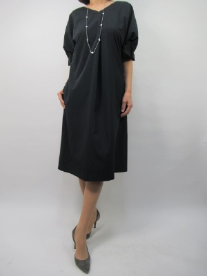 お出かけが多くなる季節。一枚でオシャレになるワンピースはとても重宝。ベーシックなネイビーに小物でアクセント。おうち洗いできる一着です!エレガンス度90%、フェミニン度10%。