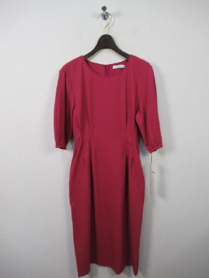 ノーマルな黒のワンピース。着やすい半袖タイプなのでお出かけに一枚で着こなせる。ポイントはスカーフで首周りに色を足すことが決め手!エレガンス度100%。