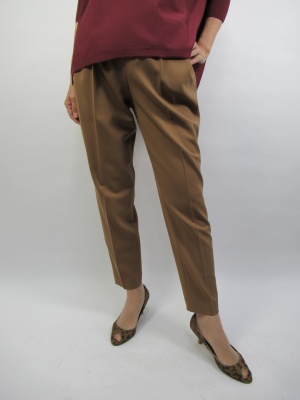 今秋注目のカラーはキャメル色。秋を感じさせますね。キャメルに相性が良いボルドーを合わせてより秋のイメージを演出。またスクエアデザインのニットは身体のラインを上手にカバーしてくれます!スタイリッシュ度70%、エレガンス度30%。