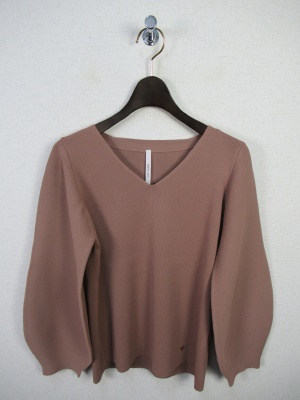 少し裾が広がったハイウエストスカートはとても上品。袖ふんわりニットでフェミニンなスタイルにしてみました。色もスモーキーなピンクにグレーはよくマッチします!フェミニン度70%、エレガンス度30%。