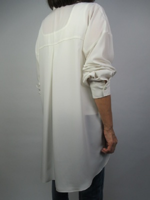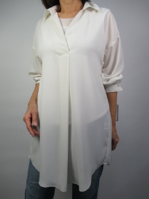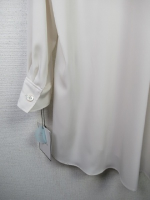 スキッパー襟のロング丈ブラウス かぶり ドロップショルダー 袖カフス 手洗い可能