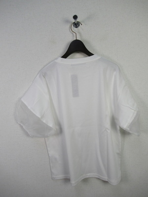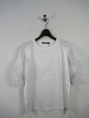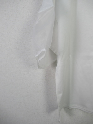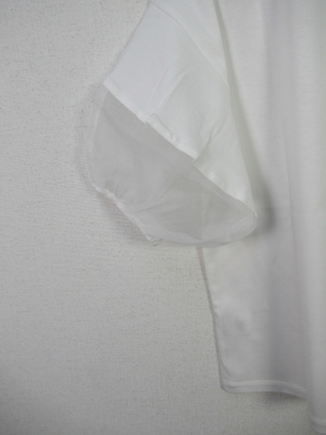 ボリューム袖のカットソー、途中オーガンジー生地をドッキングさせた袖、手洗い可能