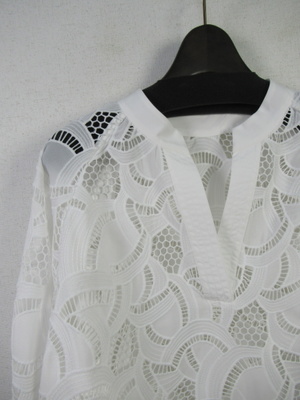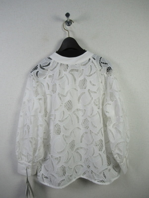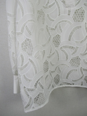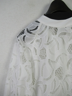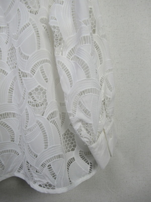 カットワークレース生地のブラウス スキッパー襟 襟ぐりと袖カフスは同色の無地 手洗い可能 スカートあり