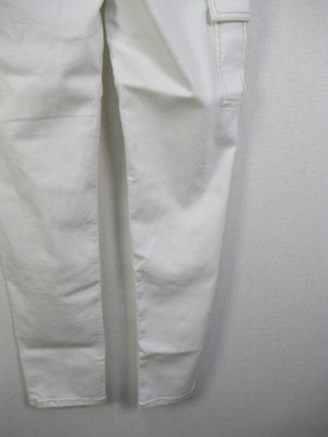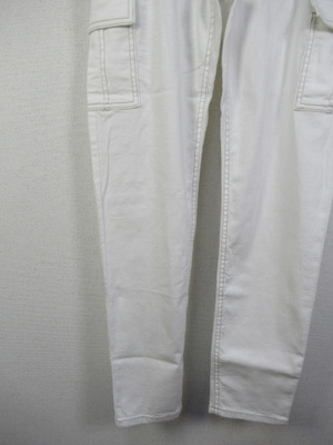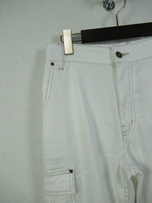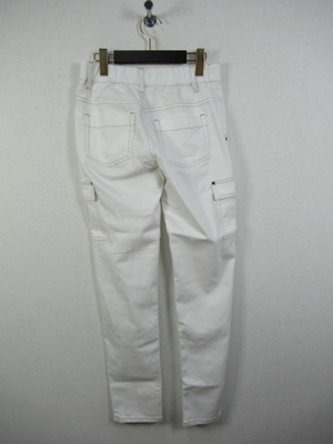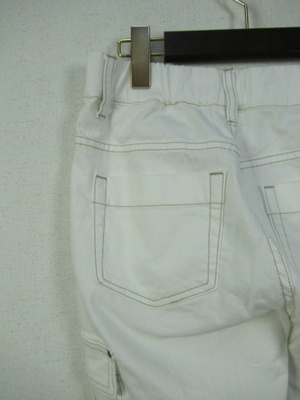裾に向かって細身 カーゴパンツ 前ファスナー ウエスト後ろゴム ステッチ糸ベージュ 手洗い可能