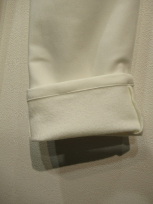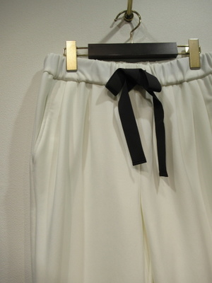 ウエストゴム グログランテープリボン テーパードパンツ フルレングス 裏起毛手洗い可能