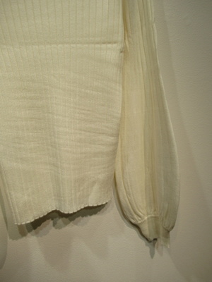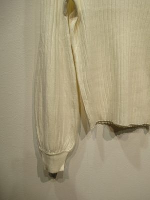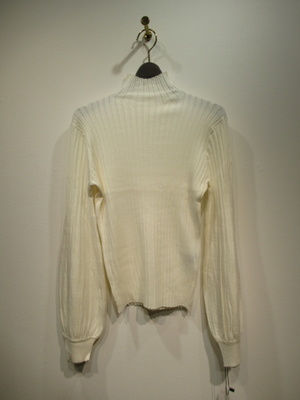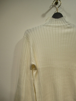 ハイネック 太リブのニット 袖は肘下はボリュームあり 袖口リブ 手洗い可能