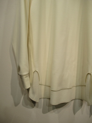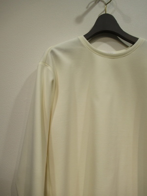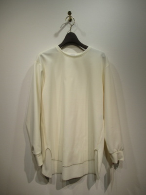 裏起毛のシンプルなカットソー ドロップショルダーで袖口カフス 裾は後ろが長めで脇ラウンドスリット 手洗い可能