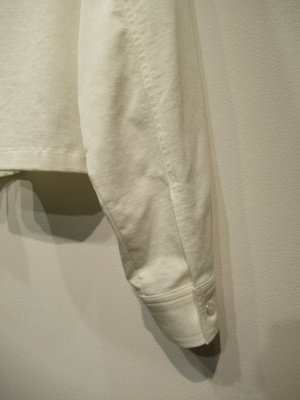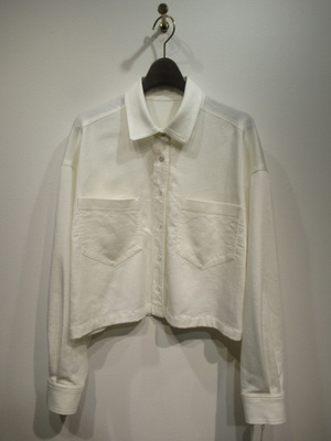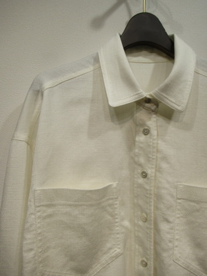テンセル生地のジャケット風のシャツ、フロントに大きめの張りポケット、襟はステンカラー、フロントボタンはシルバー、袖口カフスもシルバーボタン、手洗い可能手洗い可能
