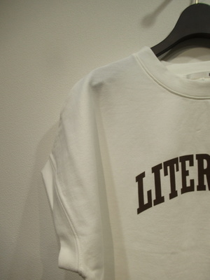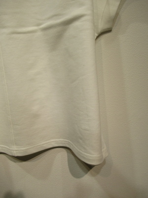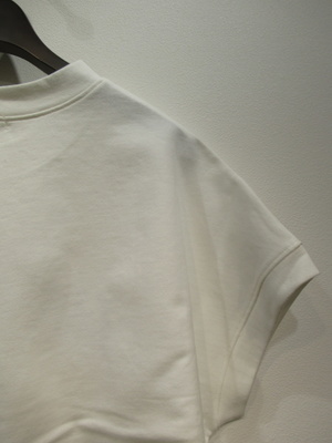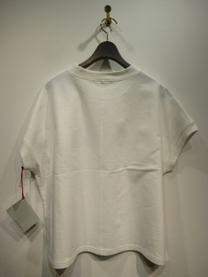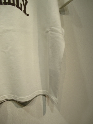 スクエアデザインのカットソー、ロゴ入り、フレンチスリーブ、白はブラウン系・チャコールは黒のロゴ文字、手洗い可能