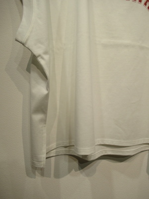 身幅広めのカットソー、裾は前後差有り、脇スリット、ロゴ入り(白は赤・グレーは黄色)、手洗い可能