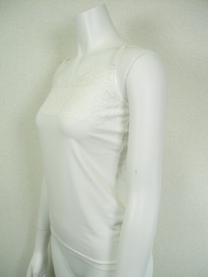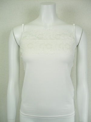 マリードール定番のキャミソール。幅広のレースと長さ調節できるストラップでインナーに便利です。