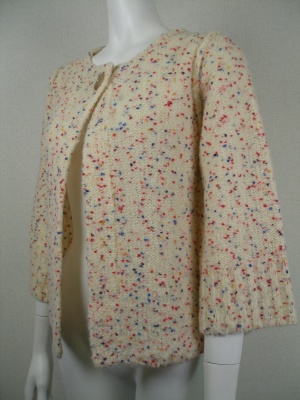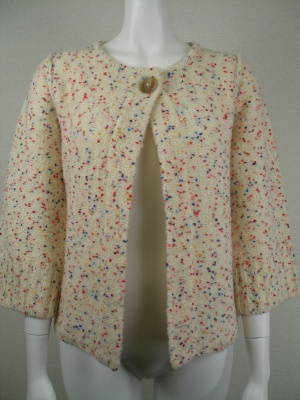 一つボタンのボレロタイプ ミックスツイードの織りがキュート