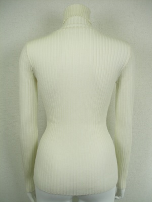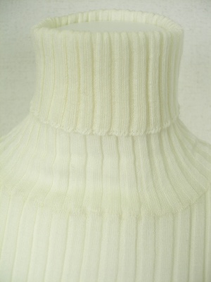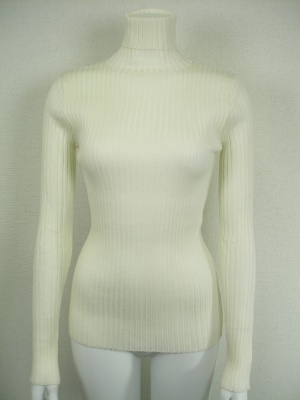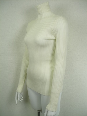ベージックなリブタートルニット。手洗いしても縮みにくく、毛玉ができにくいトリートメント加工を施してあります。