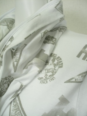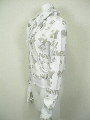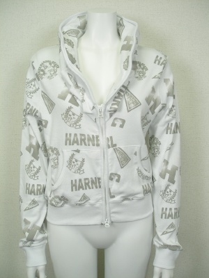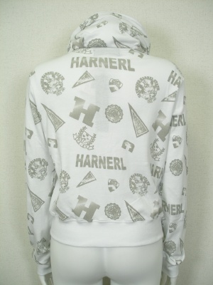 キャサリンハーネル好きにはお馴染みデザインのパーカが新柄で登場。フードは襟に内蔵されています。
