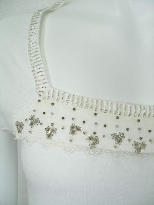 レースに刺繍にビーズ・・・清楚なディテールがスクエアネックに映えます。