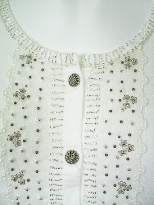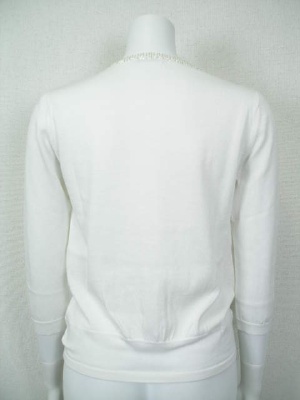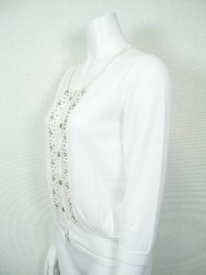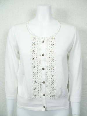 レースやビーズ使いがアンティークな雰囲気のカーディガン。