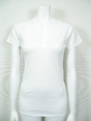 マカフィーのシンプルTシャツ。脇に縫い目がないので着心地が良く、インナーに最適です。深めのVネックです。