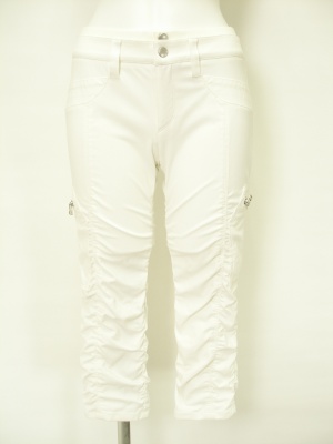 ピタッと細身のクロップドギャザーパンツ。