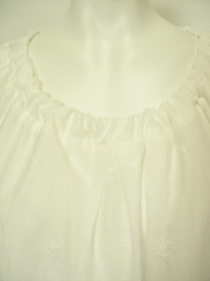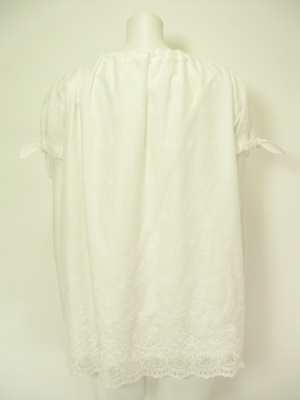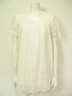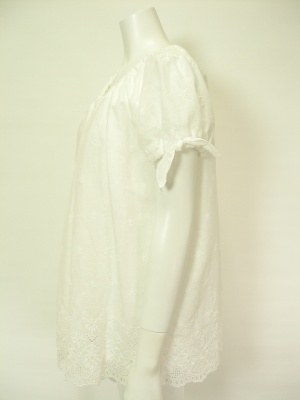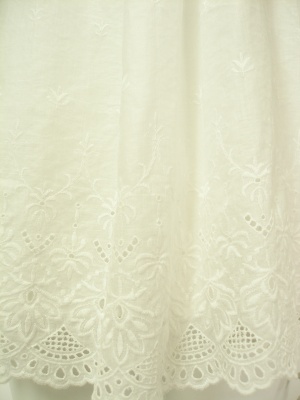 全体には小花刺繍、裾にはレース刺繍が同色の糸で施されています。
