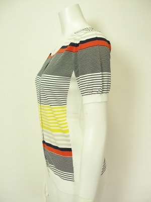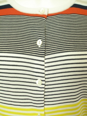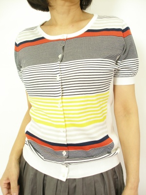 マルチボーダーのハイゲージカーディガン。