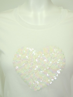たっぷりのスパンコールで立体的に仕上げたハートが可愛いカットソー。