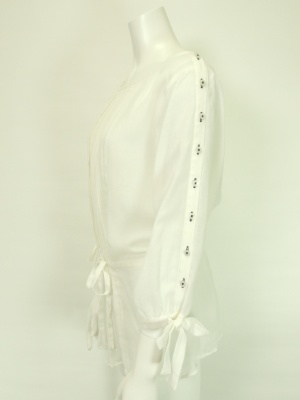 アコーディオンプリーツやお袖のボタンなど、さりげなく凝ったデザインです。
