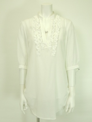 フリルが上品なチュニックブラウス。