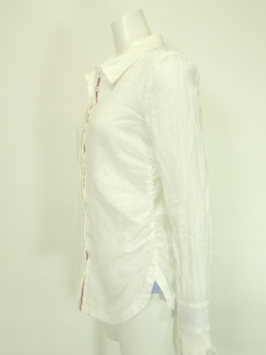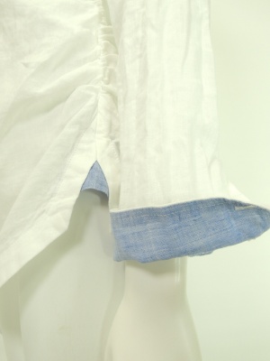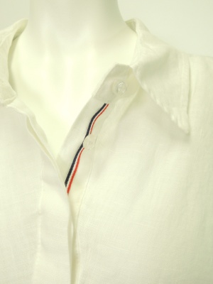 前立ての内側はトリコロールのテープを、カフスと肩ヨークの内側は異素材を使用しています。