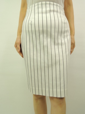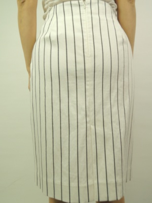 ストライプ柄、裏地有、後ろファスナー、ベントスリット