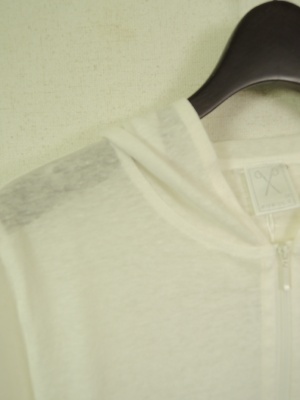 麻混の薄手パーカ、着丈もショート、コンパクトなので11号で仕入れました。 脇にポケット、手洗い可