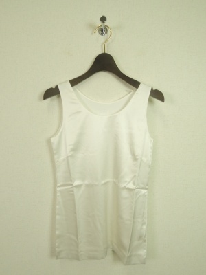 前身頃はサテン地の光沢感があるシリーズ、首周りは2枚合わせでミシン目が出ないライン