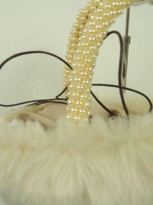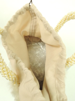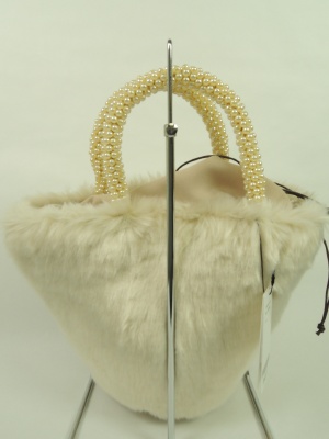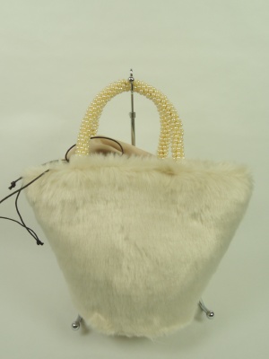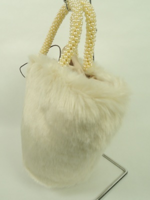 巾着型のフェイクファーバッグ 持ち手はパール