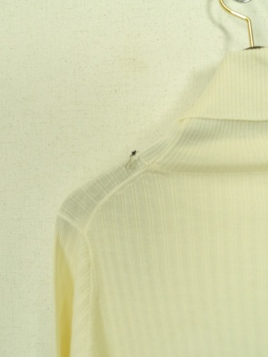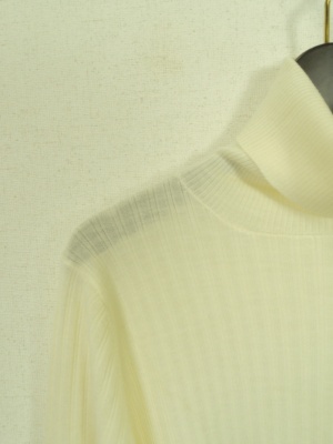 ネックはリブ編み 身ごろは幅が入れ違いのリブ、袖はやや緩め