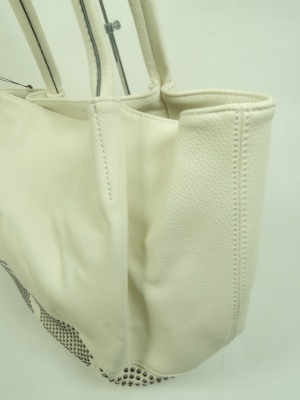 大きめトート、天ファスナー、底部分にスタッズ付き