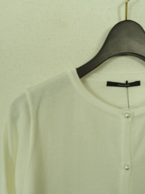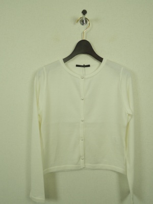 やや短丈 クルーネックカーデ ボタンはパール ワンピースなどの羽織として