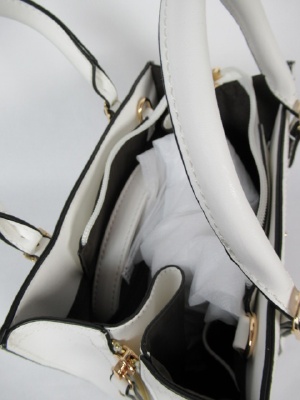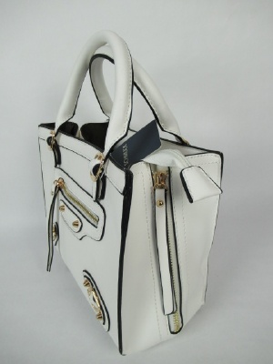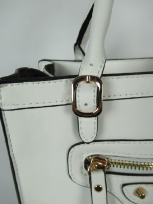 やや小さめのバックは表と裏にファスナーのポケット及び飾りがあります。マチもファスナーで広げる(あくまでもデザイン)用にできます 、ショルダーベルト付属