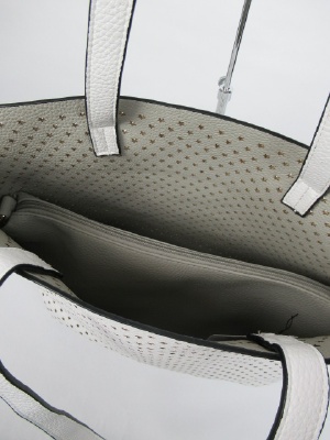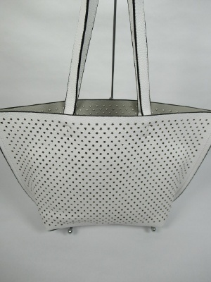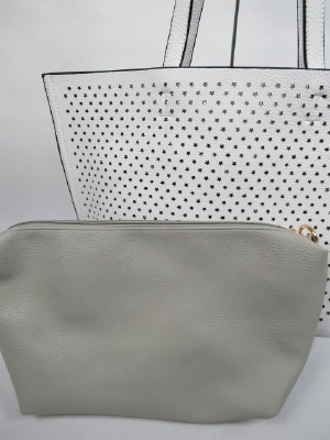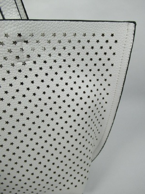星の形のパンチング、インバッグがシルバーのみゴールド(バッグの裏側も)、白とピンクは薄いグレーです、2WAYにもできます