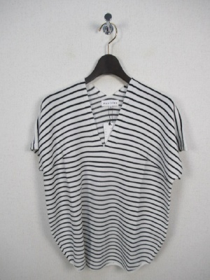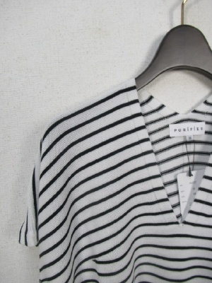 Vネックプルオーバー ゆるっとしたデザイン 裾絞りなので裾周りをはかりました。白はボーダー柄 手洗い可能