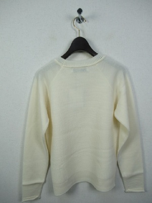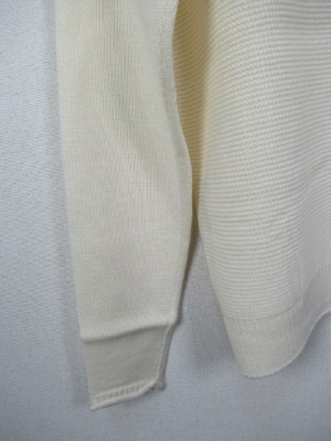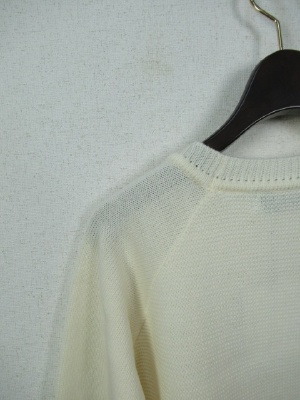 編みこみの地模様 丸首ニット 後ろ身ごろと前、袖と編み地違い