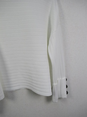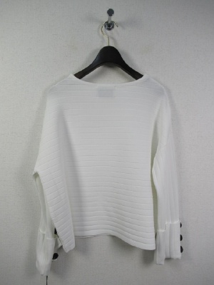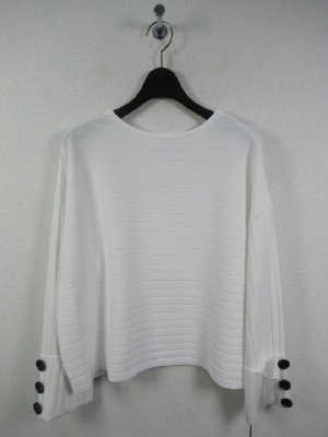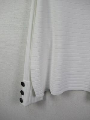 ドロップショルダー、袖口折り返し、カフス(ボタン3つ)、白とブルーのボタンはこげ茶、イエローは白ボタン