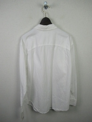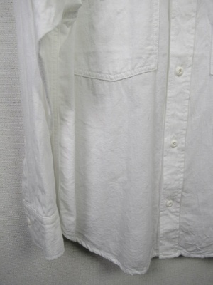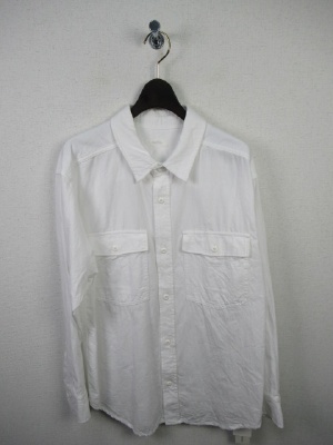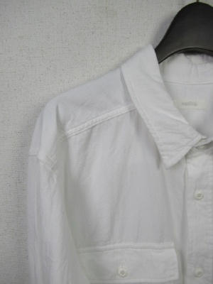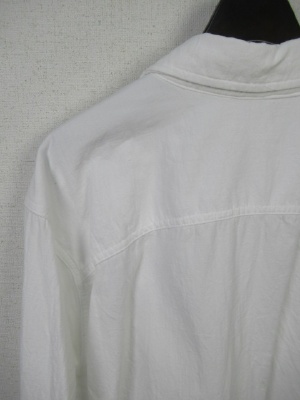 ややビッグシルエットのシャツ、襟抜きして着るデザイン、ドロップショルダー、胸ポケット
