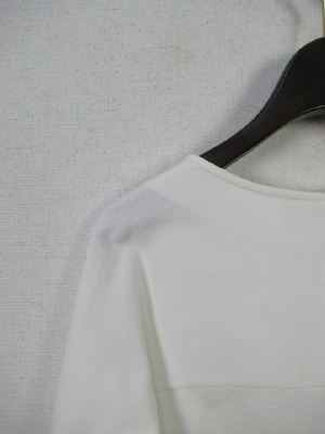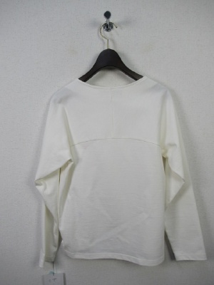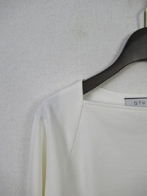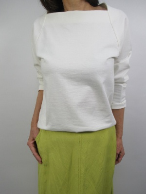 シンプルなスクエアネックのカットソー、長袖、ラグランスリーブ、後ろ身ごろに切り替えデザイン