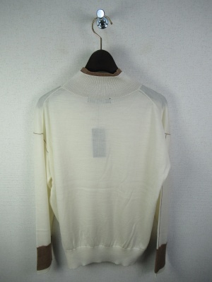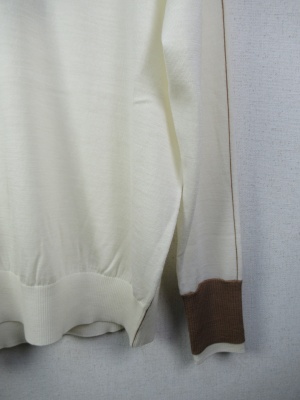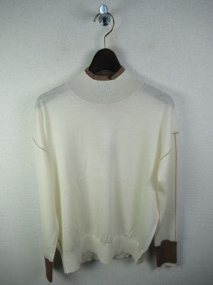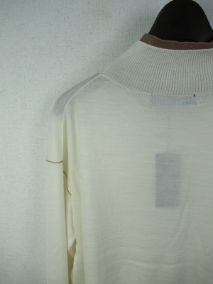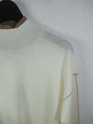 ハイネック 首のところは開かに茶系を重ねて 同じ色で袖口と袖山アームラインに茶系の糸を重ねてます